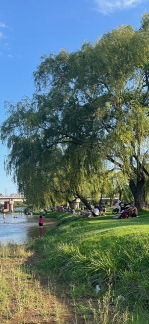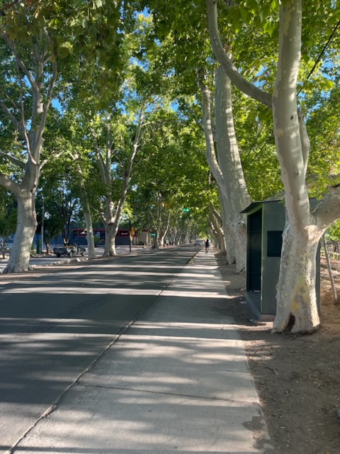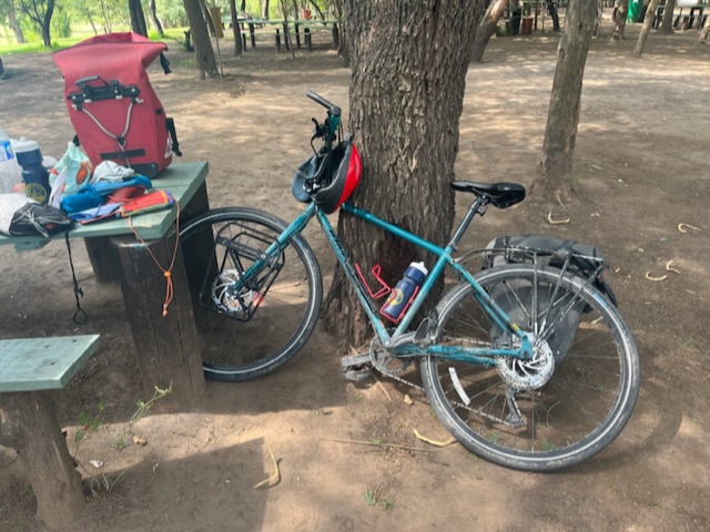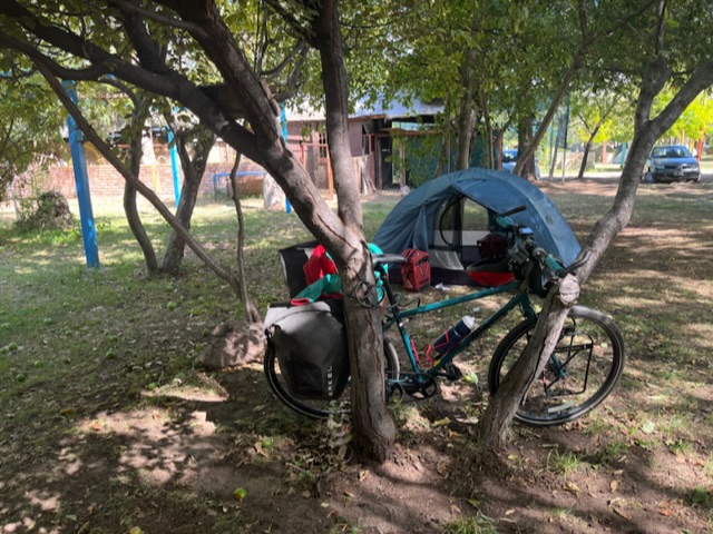 I passed vegetable stands, cafes and panaderías. I tootled along hedgerows covered with purple morning glories and red roses and by lemon and peach orchards. One small town reaching its tendrils into the next, often connected by bike paths. It was Sunday, so the sound of asados rose up all around me; families splashing in pools, picnicking, grilling and spending time together.